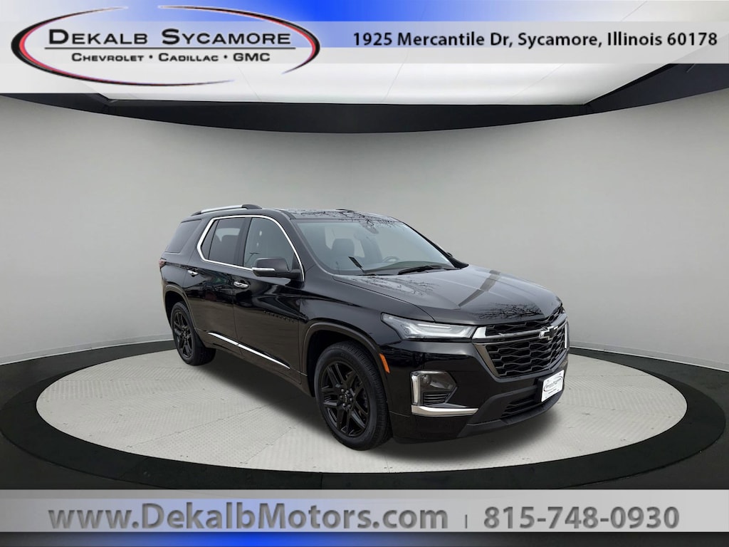 One Low Price, Plain and Simple!!! We are a Best Price Store and our consultants are not paid commission. We want you enjoy our no haggle, no hassle and no pressure buying experience. Mosaic Black Metallic 2023 Chevrolet Traverse Premier AWD 9-Speed Automatic 3.6L V6 SIDI VVT We utilize state of the art technology to insure competitive below market based pricing., Visit our dealership online or in person to see what separates us from everyone else., Our huge selection can be viewed at www.dekalbmotors.com., Contact us for more info, photos, or a vehicle walkaround video at 815-748-0959., ***Most Of Our Vehicles Include A 5 Day Money Back and 30 Day Exchange Policy***, AWD.